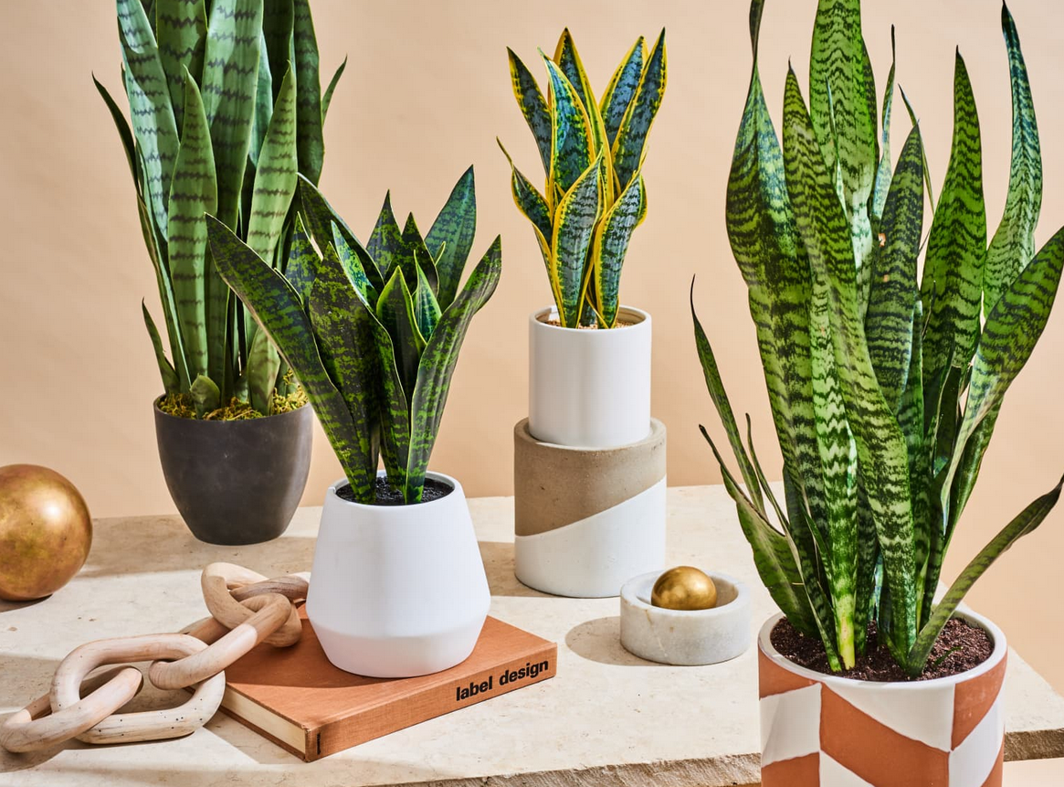 1. Snake Plant (Sansevieria trifasciata): Also known as "mother-in-law's tongue," the snake plant is a popular houseplant that is easy to care for and can remove toxins such as benzene, formaldehyde, and xylene from the air. It also releases oxygen at night, making it a great choice for bedrooms.
